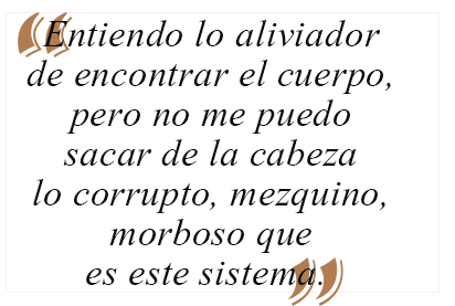 -Nada. A mí no me cambia en lo más mínimo. La historia es muy triste y no hay forma de que a uno no le dé bronca. Entiendo lo aliviador de encontrar el cuerpo, pero no me puedo sacar de la cabeza lo corrupto, mezquino, morboso que es este sistema. Yo ya había hecho el duelo por mi hermano.