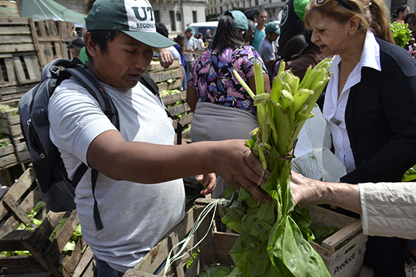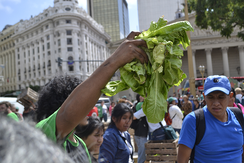 (APe).- El alimento gritó en la plaza más simbólica de la historia argentina por su propia libertad. Y viajó, soberanamente, de las manos ajadas de trabajadoras y trabajadores de la tierra a las manos, marcadas por otras historias, de mujeres y hombres que pudieron llevarlas a sus propias mesas. El color y la textura firmes de verduras frescas, recién cosechadas, limpias de venenos, salían de los cajones de madera de las manos productoras a las bolsas de quienes luego las llevarían a la boca. Lechugas regordetas, tan a contramano de aquellas otras que las verdulerías ofrecen a 150 pesos. Acelgas erguidas y berenjenas lustrosas. Ajenas todas a los largos recorridos geográficos de hortalizas y verduras envenenadas en un 60 por ciento por un amplio abanico de ecocidas, que se redistribuyen a través de mercados centrales. En el verdurazo de la UTT (Unión de Trabajadores de la Tierra) los zapallitos eran zapallitos y los tomates, tomates. No esos productos plastificados, faltos de sabor y de olor.